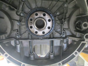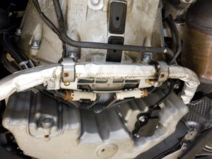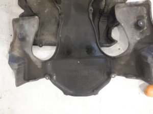 サスペンション交換の際リフトアップしてエンジンアンダーカバーを取り外すとオイル漏れを発見 アンダーカバーにもオイルがべったり付いているのでお客様に報告して修理させていただきました