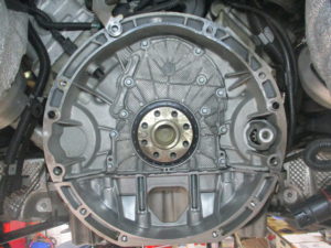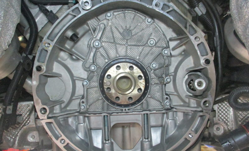 漏れている箇所はエンジンとミッションの間部分 エンジンリヤクランクオイルシール部だと思われます