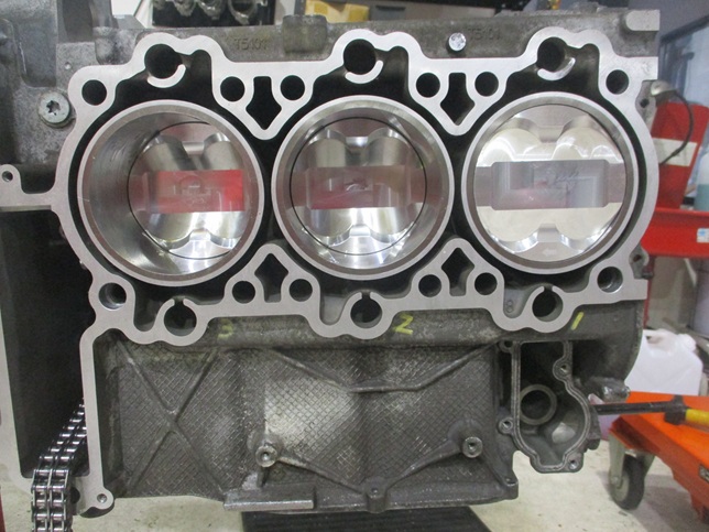 クランクケースにスチール製のシリンダライナーを組み込み加工します。1-3バンクも同様にしています。