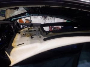 とりあえずルーフライニングを外して不具合箇所を探していきます