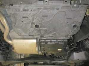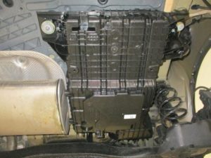 トランクフロアの下側アンダーカバーを取外すとアドブルータンク全体が見えます